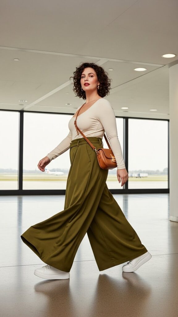 Palazzo pants are criminally underrated for travel. They’re flowy, they don’t wrinkle easily, and they make you look elegant even when you feel like a disaster. Pair them with a fitted bodysuit to balance the volume, and you’ve got a look that’s both comfortable and chic.