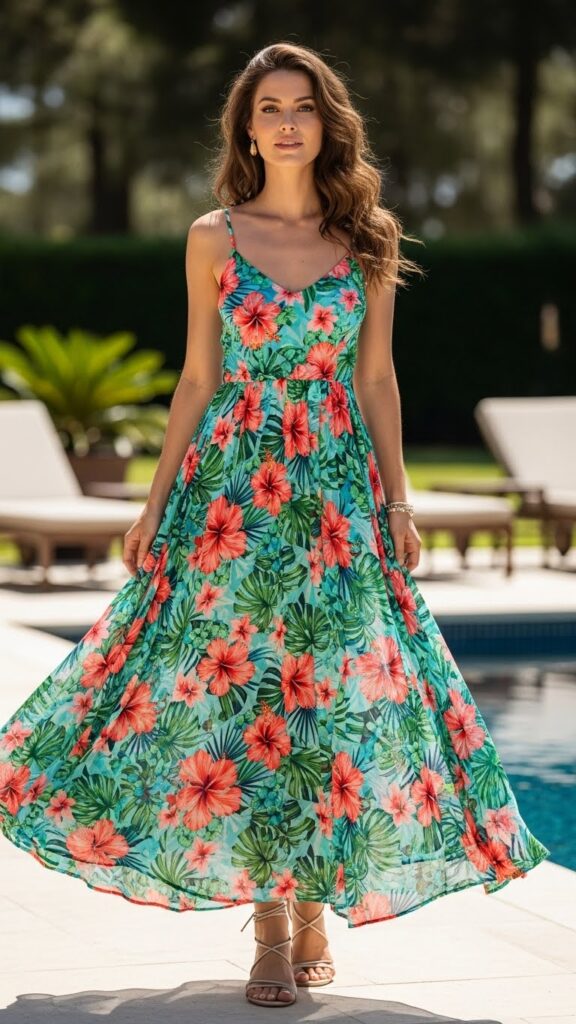 Here’s the thing about a good maxi dress at a pool party: it just works. The length keeps things elegant while still catching every breeze that passes by. Plus, you can literally throw it over your swimsuit in two seconds flat and look like you spent an hour getting ready.