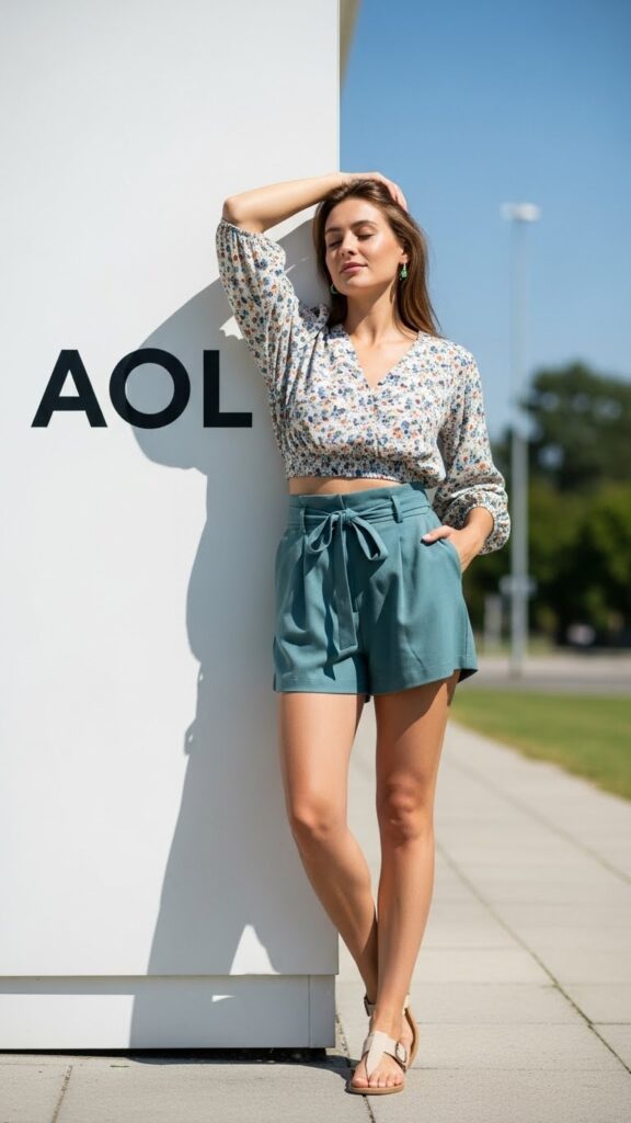 Sometimes keeping it simple is the move. High-waisted flowy shorts paired with a cropped breezy blouse is a foolproof combination that never disappoints. You’re comfortable, you’re cute, and you can actually move around without restrictions.