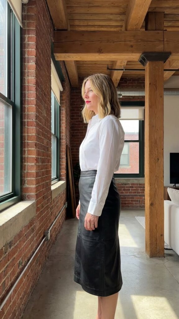 Okay, this one takes a tiny bit of confidence, but you absolutely have it. Leather pants or faux leather if that’s more your vibe, paired with a flowy silk blouse, create this perfect tension between edgy and feminine. It’s giving main character energy.