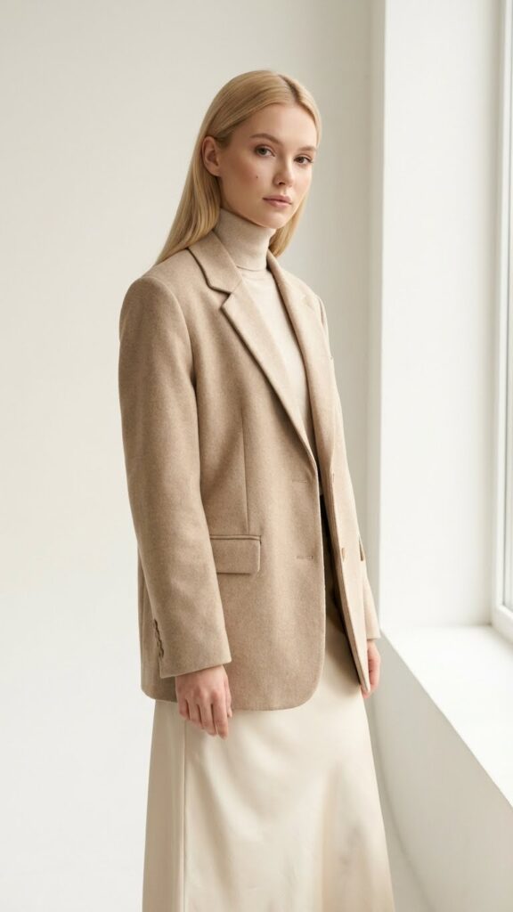 A turtleneck tucked into a pleated satin skirt creates one of winter’s most sophisticated silhouettes. This pairing gives you the freedom to move effortlessly from work meetings to evening gatherings without changing your entire outfit.