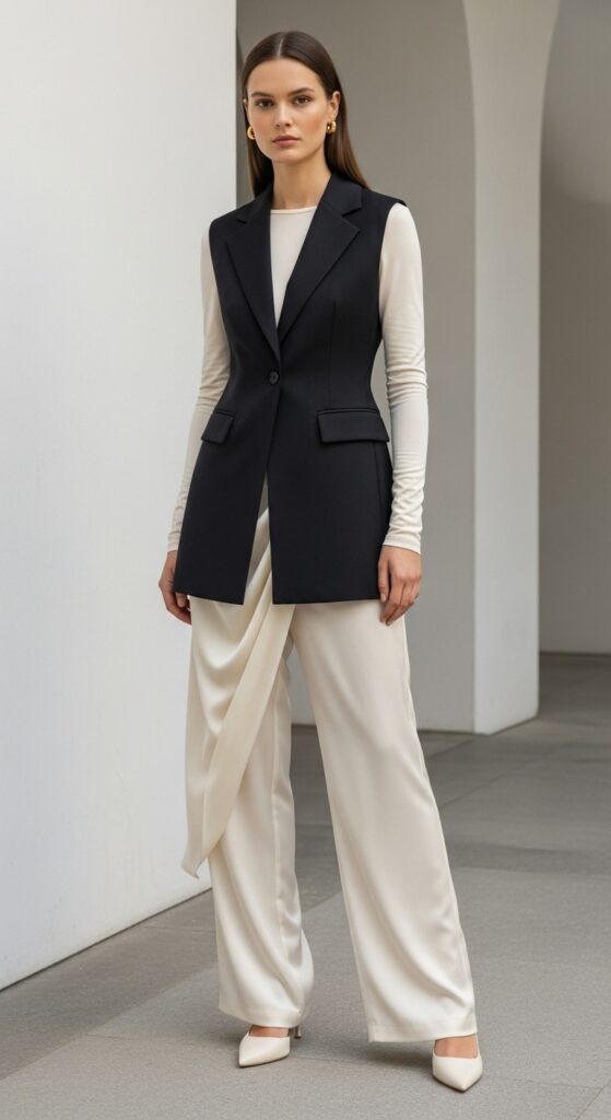 Vests have made a serious comeback, and I’m absolutely here for it. Layer a structured vest over a simple long-sleeve shirt with your silk trousers for a look that feels very now. It’s modern, it’s interesting, and it requires minimal effort.