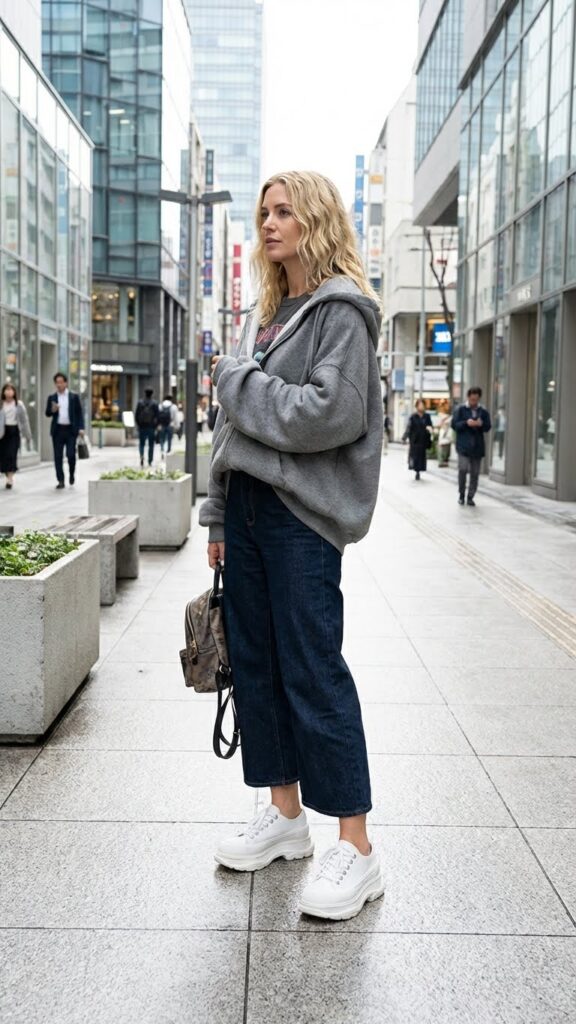 Style them with cropped wide-leg pants and an oversized hoodie for peak comfort-meets-cool vibes. Or go the opposite direction and pair them with a flowy midi skirt and fitted top for that high-low mix Tokyo does so well. The beauty of platform sneakers is they ground even the girliest outfits with a bit of toughness. Plus, your feet will actually survive a 20,000-step day exploring every neighborhood.