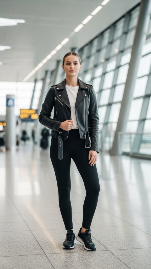 The leather jacket is that forever piece that never goes out of style. It works for literally any destination and any season. People love this look because it requires minimal thought but always delivers. Plus, you feel like a total badass walking through the terminal.