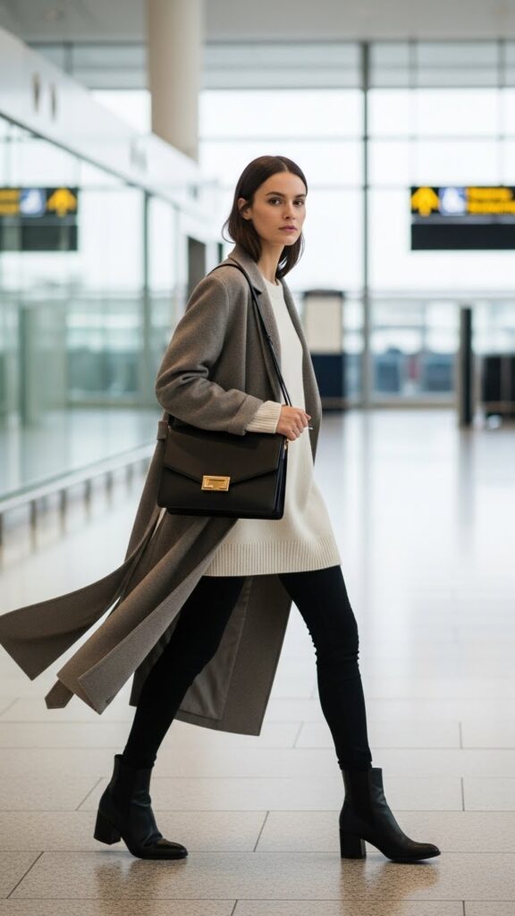 An extra-long coat or duster creates serious drama and makes you look like you belong in a fashion editorial. It’s warm, stylish, and surprisingly practical for travel.