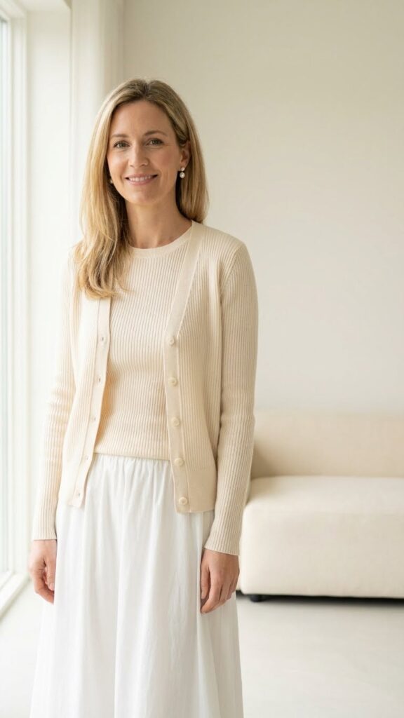 Don’t forget fleece lined leggings underneath your maxi skirt on especially cold days. This hidden layer keeps you comfortable without sacrificing style. Add a cashmere scarf in cream or camel tones to complement the cozy aesthetic.