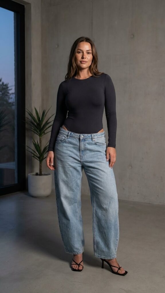 Want to feel fancy without the effort? This is it. A corset top (or even a corset-style cami) paired with high-waisted baggy jeans and elegant mules creates this beautiful juxtaposition of structured and relaxed. It’s feminine and fashion-forward without being uncomfortable.