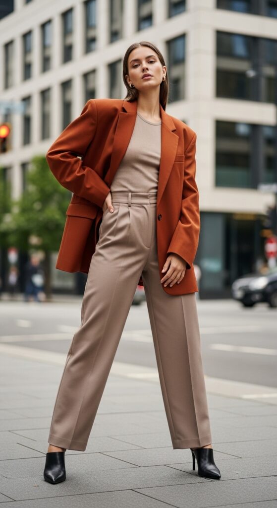 If wide leg trousers are the foundation, an oversized blazer is the crown. This pairing is absolutely unbeatable for looking polished without trying too hard. The structured shoulders of the blazer contrast beautifully with the relaxed flow of the trousers, creating a silhouette that’s both powerful and easy.