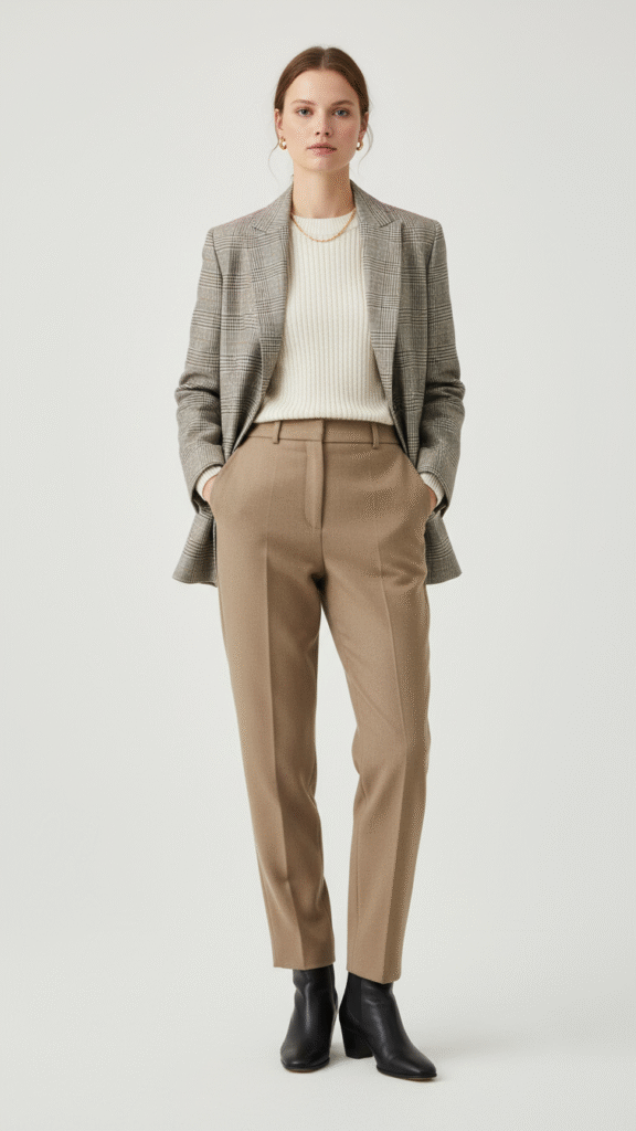 Plaid Blazer With Neutral Basics Look